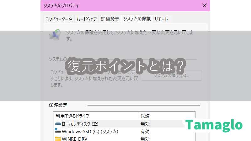 つまり、復元ポイントは「環境の巻き戻し」であって、「データの救出」ではありません。