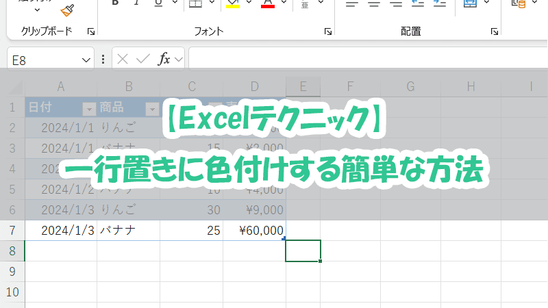 【Excelテクニック】一行置きに色付けする簡単な方法|テーブル機能の活用術