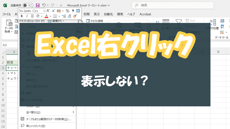 Excelで突然右クリックが反応しなくなり、コピーやセルの書式設定が... -