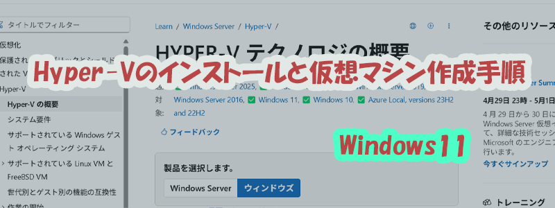 Hyper-Vは、Windows 11 Pro や Enterprise に標準搭載されている仮想化プラットフォームで... -