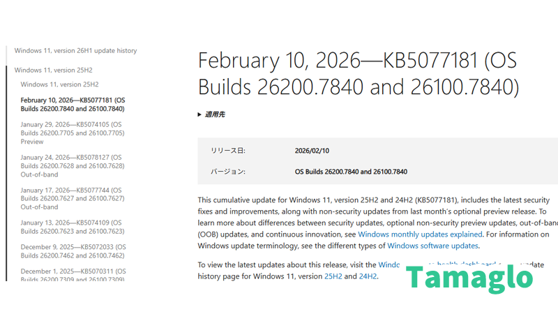 【2月11日配信】Windows 11「KB5077181」累積更新まとめ(24H2/25H2:26100.7840 / 26200.7840)