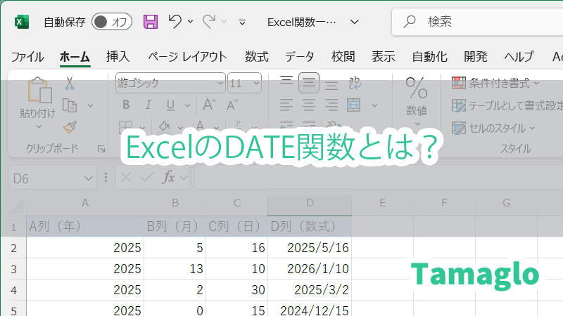 Excelでの「日付計算」の基礎力を身につけるなら、まずはDATE関数から始めましょう。