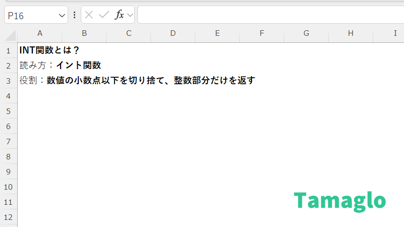 INT関数は、「小数点以下を気にせず整数だけを使いたい」ときのシンプルな切り捨て用関数です。