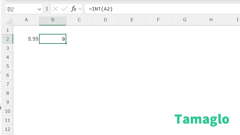 → A2 が「9.99」の場合、結果は 9 になります。