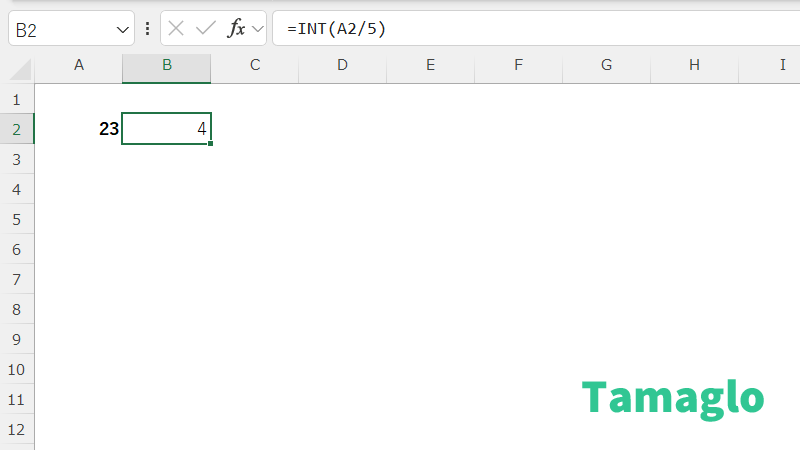 =INT(A2/5)
