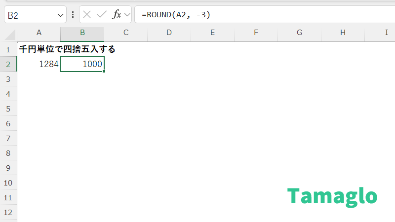 同じ考え方で、桁数を -3 にすれば千円単位になります。