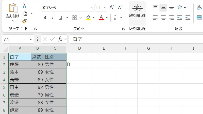 方法2:ショートカットキーで取り消し線を消す