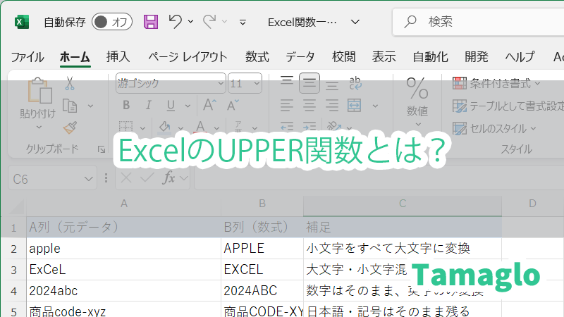 【解説】ExcelのUPPER関数とは?英字をすべて大文字に変換するシンプルな使い方ガイド