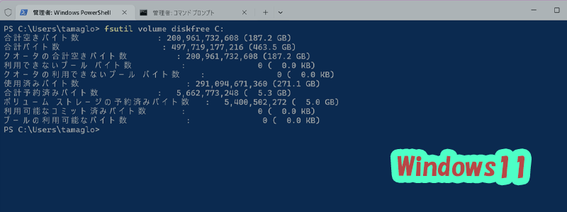 Windowsには標準で搭載されている「fsutil」というコマンドがあります。このツールを使えば、ディスクのサイズや空き容量、ファイルシステムの情報などをコマンドラインから確認できます。