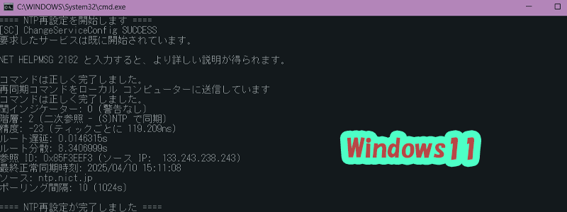 【Windows11】NTPサーバーをバッチで再設定する方法|w32time自動化スクリプト付き