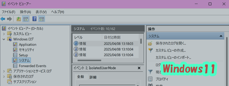 Windows 11では、何か異常が起きると「イベントログ」に記録されますが... -