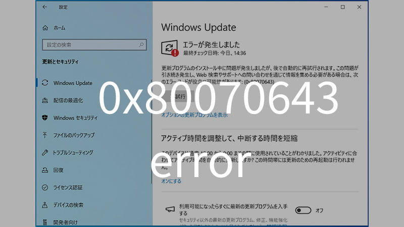 「2024年」最新のアップデートを適用しようとすると「0x80070643」のエラー... -