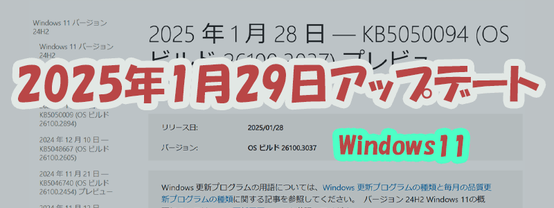 Windows 11 最新アップデート KB5050094 (OS ビルド 26100.3037) プレビュー版の詳細