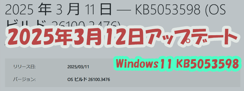 2025年3月12日にリリースされたWindowsアップデート(KB5053598)が、いろいろなӠ... -