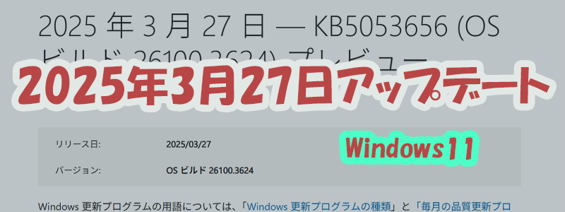 2025年3月28日、日本時間でWindows 11 バージョン24H2向けのプレビュー更新「KB5053656ӎ... -
