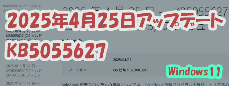 2025年4月25日、Windows 11 バージョン24H2向けにプレビュー更新プログラム「KB5055627ᦀ... -