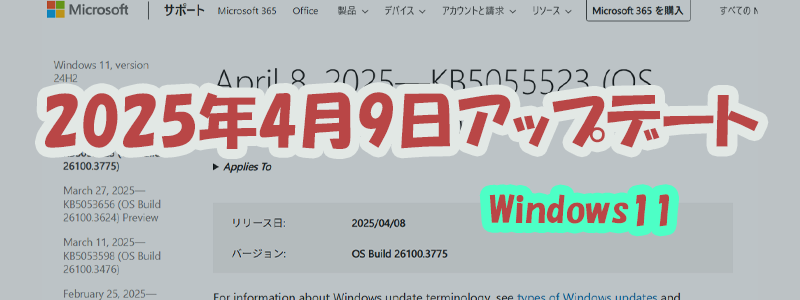2025年4月9日、Microsoftは「Windows 11 バージョン24H2」向けに累積更新プログラムKB5055523の配信を開始しました。この更新により、OSビルドは26100.3775にアップグレードされます。 この更新は毎月恒例の「Patch Tuesday」に合わせて提供されたもので、... -
