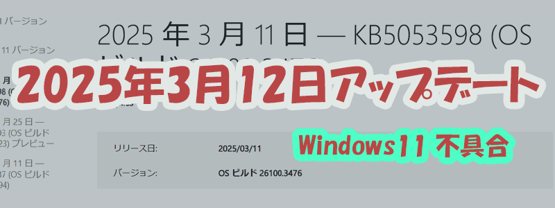 2025年3月12日にリリースされたWindowsアップデート(KB5053598)が、いろいろなトラブルを引き起こしているという声が多く聞かれます。この記事では、初心者の方でも分かるように、どんな問題が起きているのか、そしてどう対処すればよいのかを解説します。