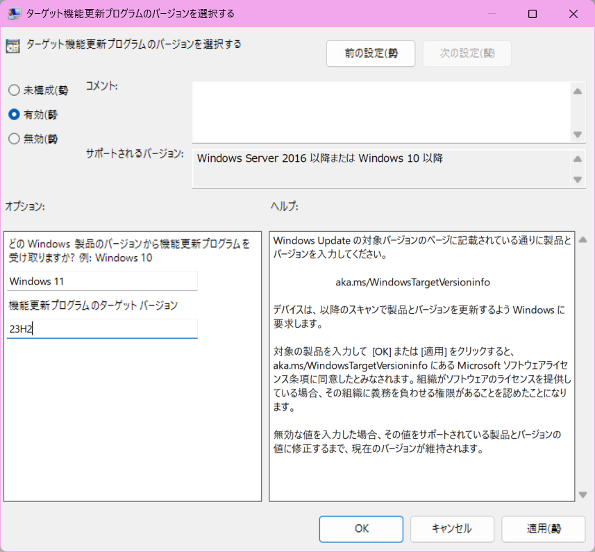 - この設定により、24H2がインストールされるのを防げます