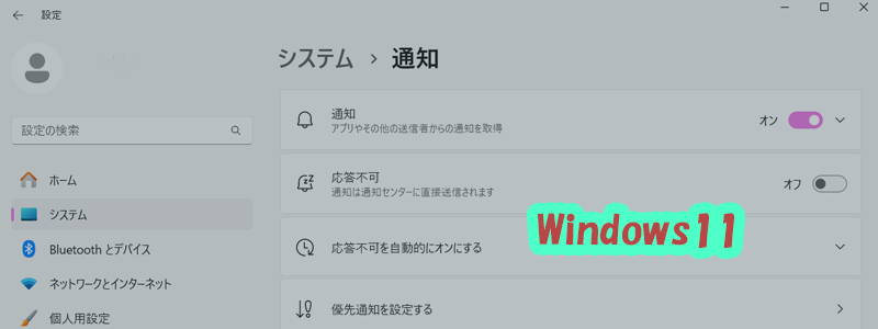 Windows 11では通知とアクションを自由に調整できる仕組みがあります。